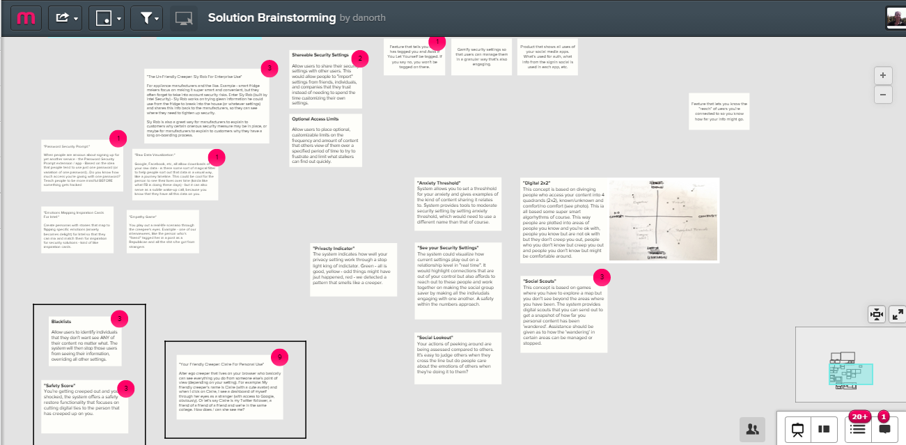 Next, we set out to understand the emotional landscape around the creeper problem with user research. Each team member recruited participants via social media and was responsible for conducting at least one interview.