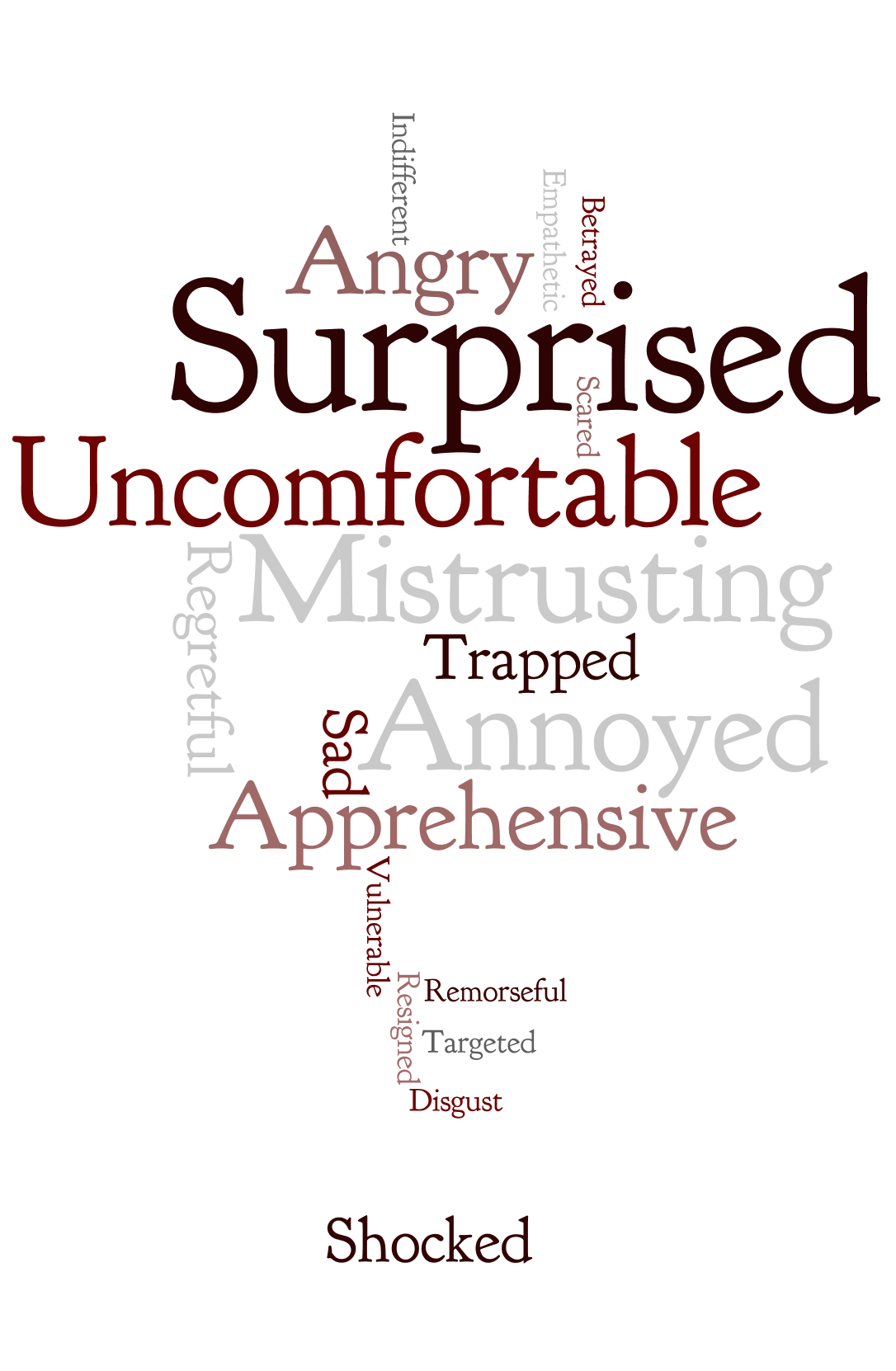 We compiled our findings, taking a tally of the emotional terms our participants had used to describe their experiences so we could identify trends.
