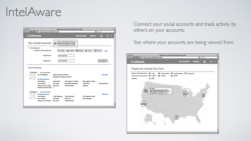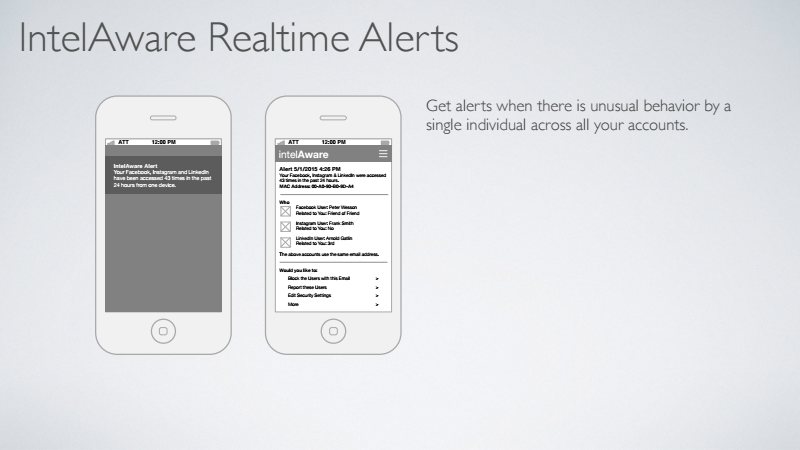 - IntelAware: Monitors of all your data-collecting devices and platforms so that you’ll always be aware of any suspicious activity around any of your online platforms.
