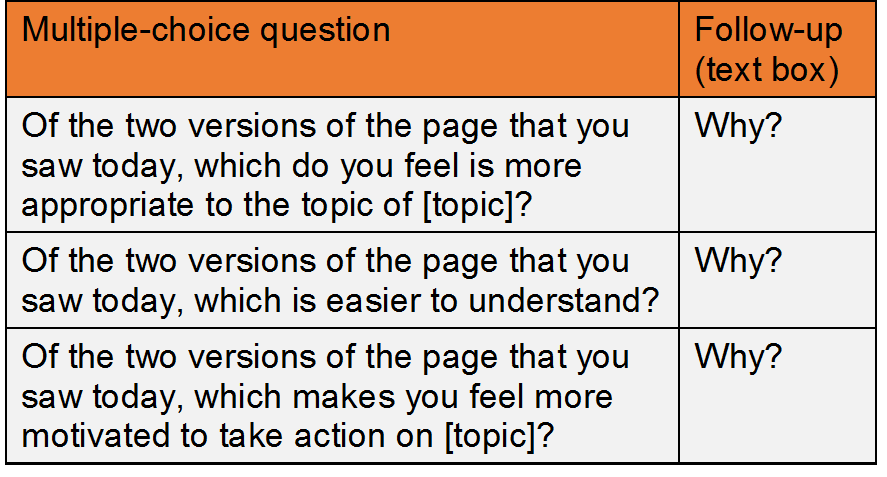 - Which of the 2 versions do users feel is more appropriate to the topic?