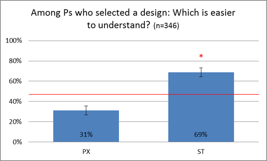 - Comprehension: This was the only place in the study with virtually identical performance for the two designs. About ¾ of participants understood what the tool would and would not do, regardless of which version they had seen.