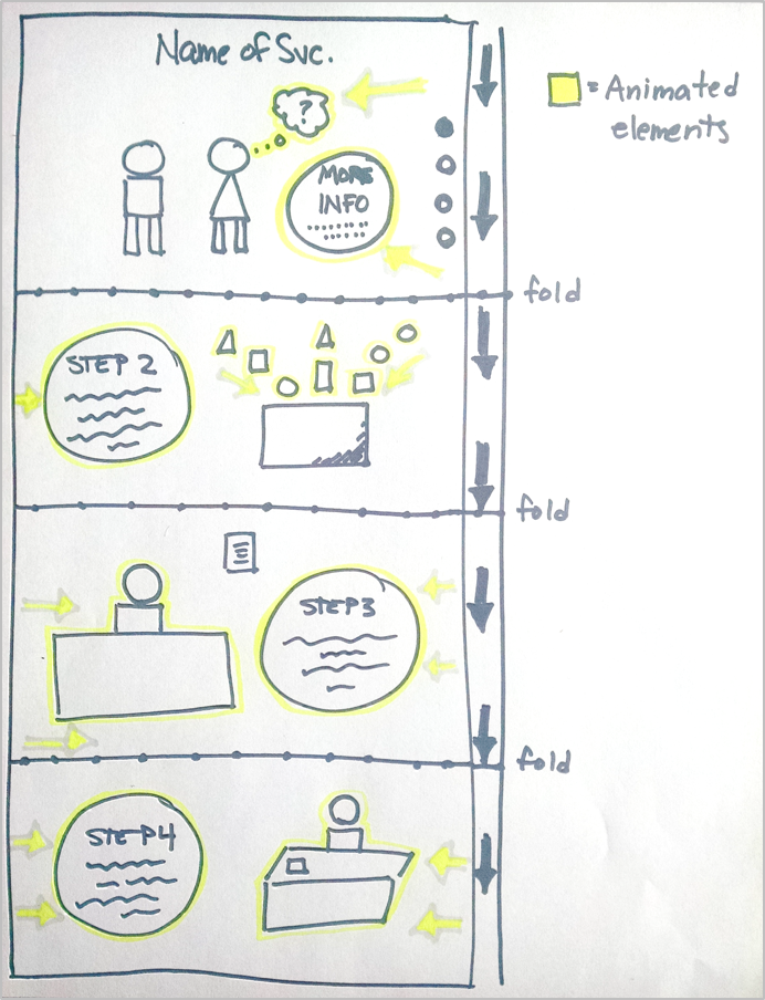 Some team members (myself included) were concerned that the design and animation were not appropriate for the expected user group. We decided to run a study that would compare preference and performance data between the flat, parallax design and a more traditional, static design with the same content.