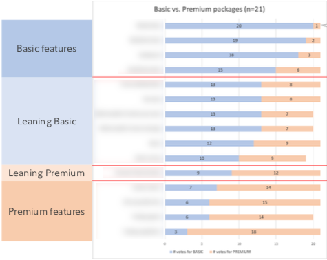To make do with this small sample size, we combined the feature prioritization, pricing, and packaging learning objectives into a hybrid quant/qual study: 60-minute, 1:1 interviews with ~40 participants in which I would: