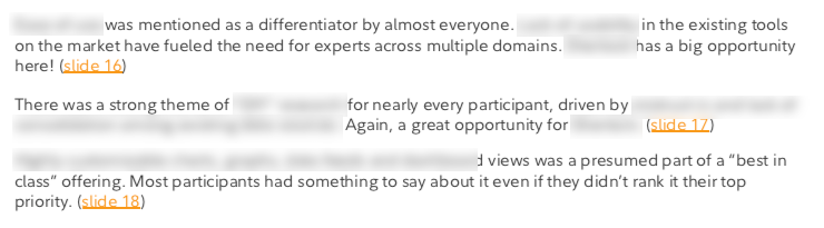 In addition to the report, a colleague and I compiled a video highlight reel that the product team could share in its steering committee presentation. It was a big hit, and obviously would not have been possible with a straight quant study.